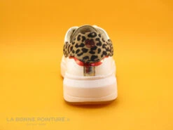 L’arrière de la chaussure Dockers 46AD204 est habillĂ© d’une partie lĂ©opard noire et beige, soulignĂ©e de rouge mĂ©tal.