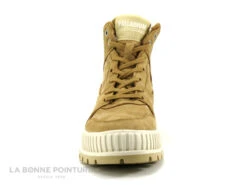 Une lanière en cuir velouté rouge habille le devant des boots Fluchos Noa, elle se positionne avec un velcro.