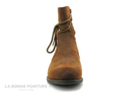 La bottine Jet7 Confuse est ornĂ©e d’un lacet marron sur le haut, nouĂ© sur le cĂ´tĂ© de la chaussure.