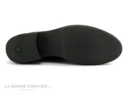 Cette bottine Femme est en cuir noir, avec des empiècements effet poncĂ© sur le cĂ´tĂ© externe et Ă l’arrière.