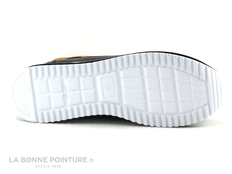 Cette basket montante Femme à plateforme La Vie est Belle Bormio associe velours côtelé marron/orange et cuir noir, pour un rendu inédit et super original.