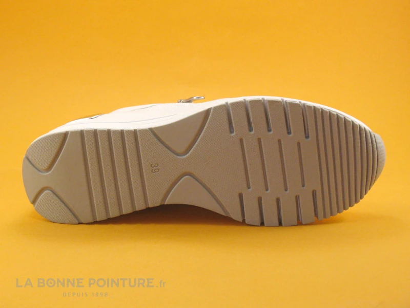 La semelle de marche avec talon compensĂ© est souple, mesurant environ 6.5 cm de hauteur. DĂ©tail mode : la bande argentĂ©e Ă l’arrière des baskets MTozzi 23743…