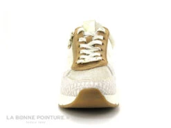 Le lacet contraste en noir, il passe à travers 2 oeillets pour fermer la chaussure plateforme beige Tamaris 1-23739-29.